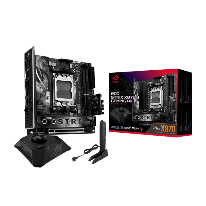 ASUS ROG Strix X870-I Gaming Wi-Fi AM5 m-ITX Motherboard, AMD X870 Chipset, 2x DIMM DDR5 Slots, 96GB Max Memory, 2x M.2 Slots, 1x PCIe 5.0 x16 Slot, Wi-Fi 7 & BT 5.4, Black | 90MB1IW0-M0EAY0