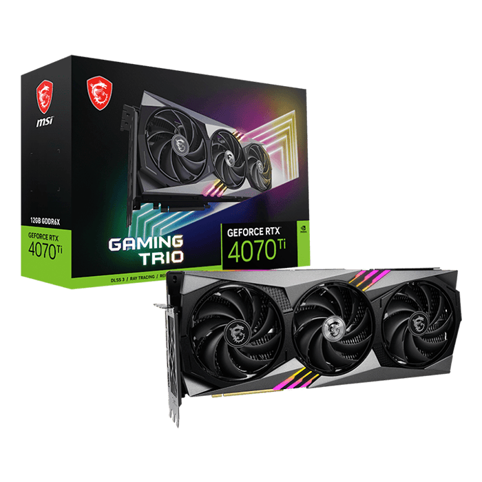 MSI GeForce RTX 4070 GAMING TRIO Graphics Card, 12 GB GDDR6X 192-bit Memory, 2610 Boost Clock, 76808 CUDA Cores, 21Gbps Memory Speed, PCIE 4, DisplayPort x 3, HDMI x 1 | 912-V513-225