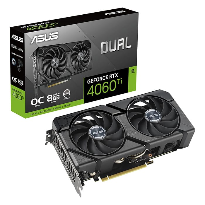 ASUS Dual GeForce RTX™ 4060 Ti EVO fuses dynamic thermal performance with broad compatibility. Advanced cooling solutions from flagship graphics cards — including two Axial-tech fans for maximizing airflow to the heatsink — are packed into the 22.7 cm long, 2-slot card, delivering more power in less space. These enhancements make ASUS Dual the perfect choice for gamers who want heavyweight graphics performance in a compact build.