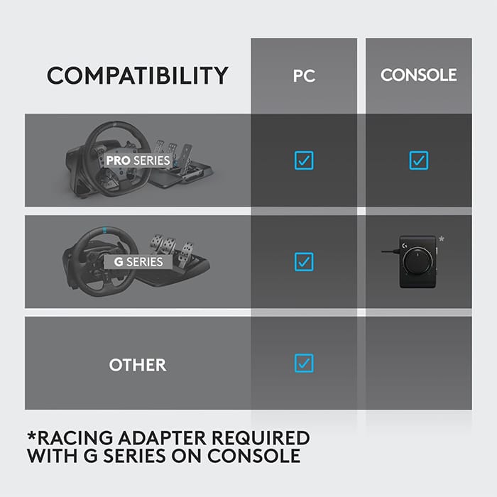 Compatible with PRO Series and G Series Wheels ? Windows® 10/11 (When connected to a compatible Logitech steering wheel – PlayStation 5/4 Xbox Series X|S Xbox One) |