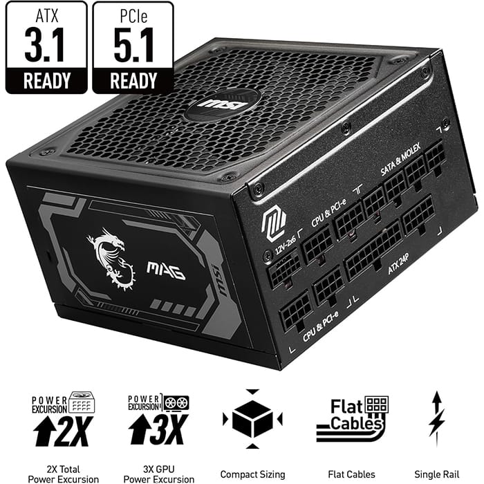 The efficiency of your power supply directly influences your system’s performance and your power consumption. The 80 PLUS Gold certification promises lower energy consumption and higher efficiency.