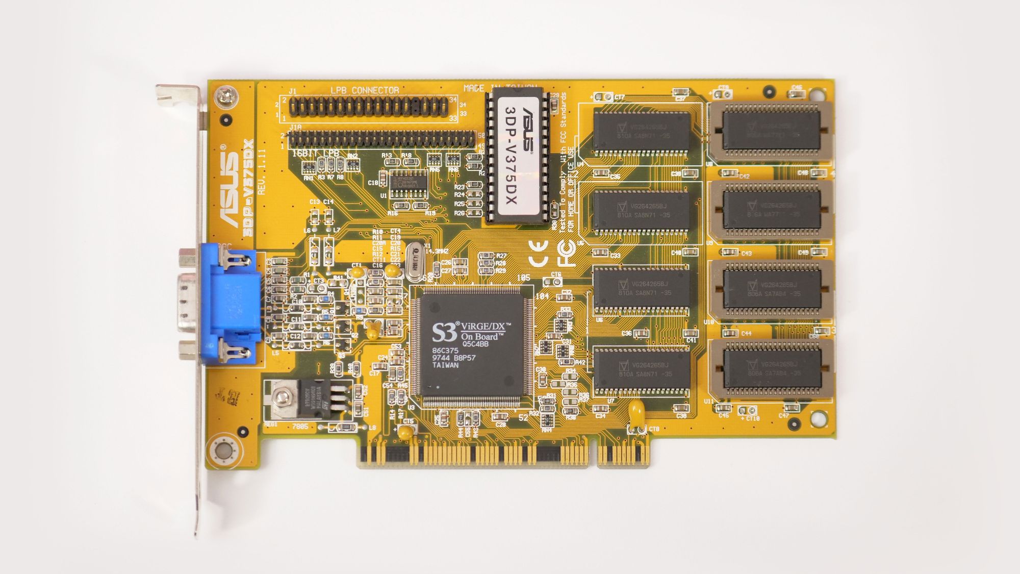 We couldn’t start this list without honoring the very first ASUS graphics cards. 3D graphics acceleration wasn’t unheard of back in the mid-1990s, but it wasn’t exactly common, either. The ASUS 375, launched in 1996, revolutionized the graphics card manufacturing process, making this component more accessible to a wider audience.